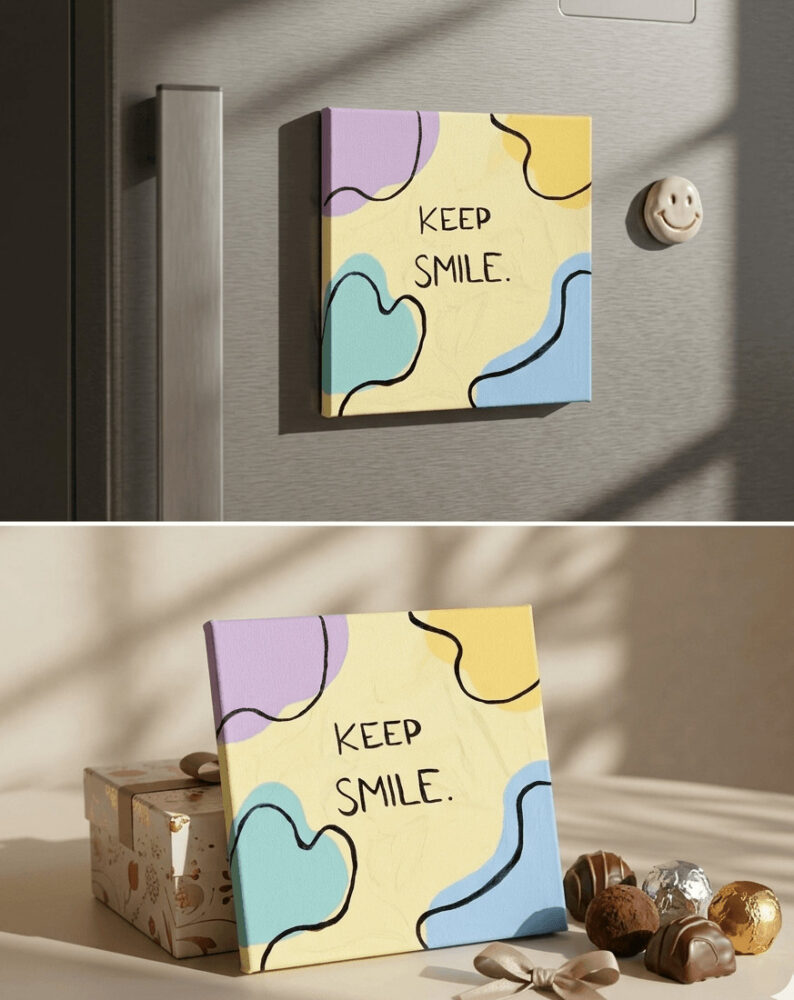 Designed to spread joy wherever it goes, this charming piece fits perfectly into your daily routine. Pop it on your work desk for a lovely little motivator while you type, attach it to your refrigerator for a warm kitchen greeting, display it beautifully on a wall, or present it as an incredibly thoughtful gift to someone who brightens your day.