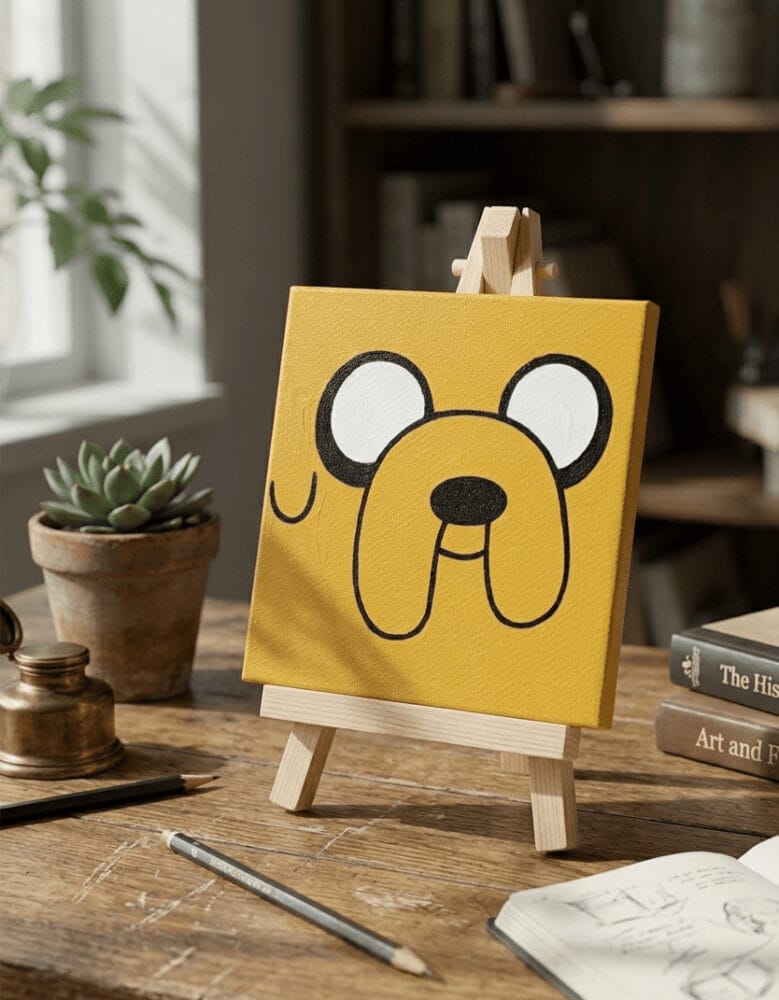 Bring a wave of nostalgic fun and a big smile into your space with this hand-painted, pop-culture-inspired canvas. Featuring the iconic, wide-eyed face of everyone’s favourite magical yellow dog, this piece is an absolute mood booster. The bold black linework contrasts brilliantly against the warm, mustard-yellow background, perfectly capturing the character’s laid-back, adventurous spirit. It is a brilliant statement piece for fans of quirky animation and modern pop art.