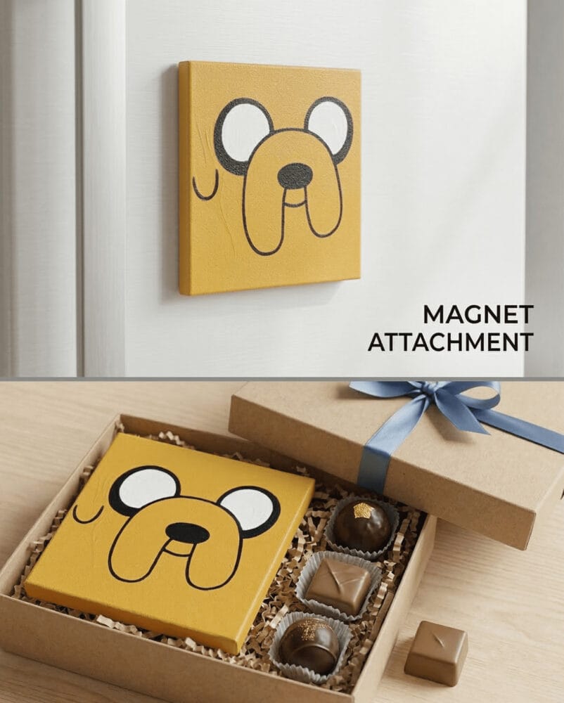 Designed for maximum versatility, this playful painting easily adapts to your lifestyle. Prop it up to bring some life to your work desk, attach it to your refrigerator for a fun kitchen vibe, hang it proudly on your wall, or give it as a brilliant, high-quality gift to a cartoon-loving friend.